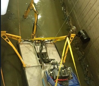 Equipo Anfibio, con herramienta tipo rastrillo. Motor Bomba.